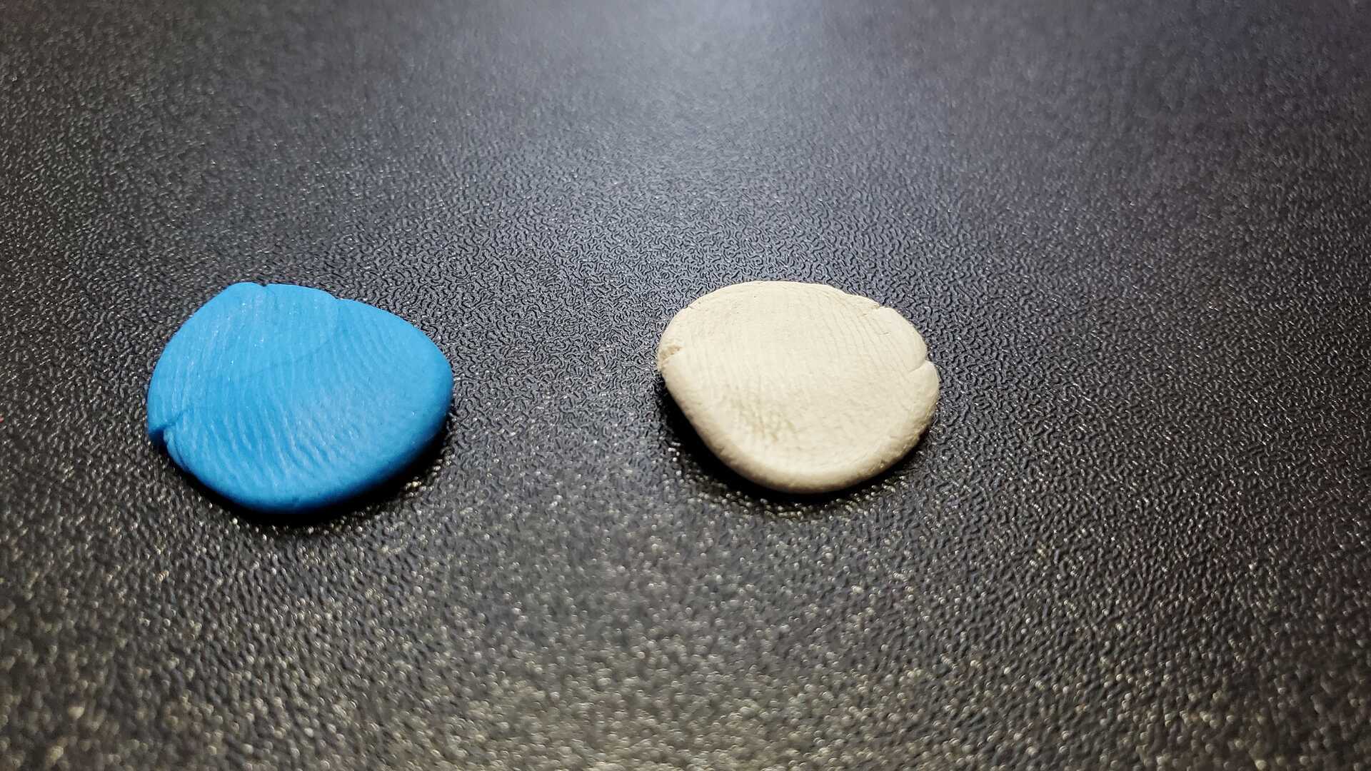 一見して同じように見えますが、実際に練ってみると比較的ひっつき虫の方が柔らかいことに気づきます。