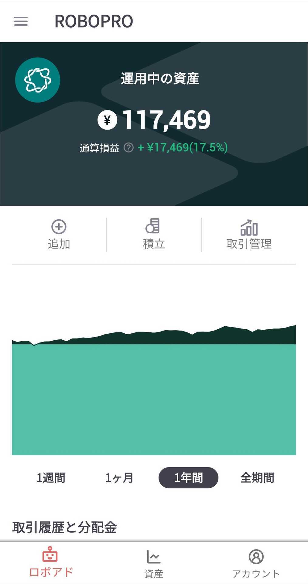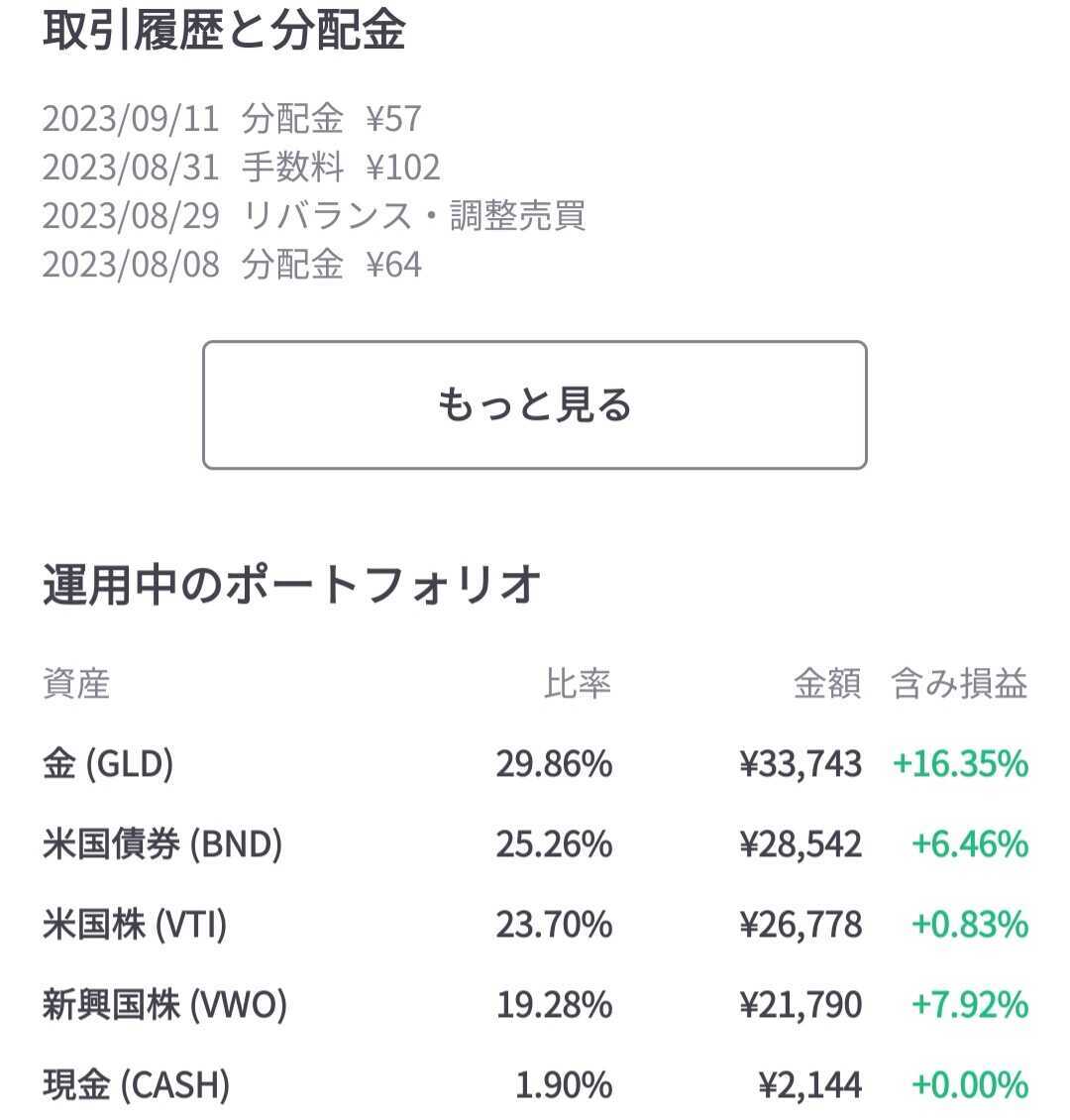買付時の銘柄選定や投資配分、毎月の投資配分の変更(リバランス)等はAIがすべて判断して全自動で行ってくれるので、ユーザーは日々のパフォーマンスを見てるだけでOKです(まさに「ほったらかし投資」)。