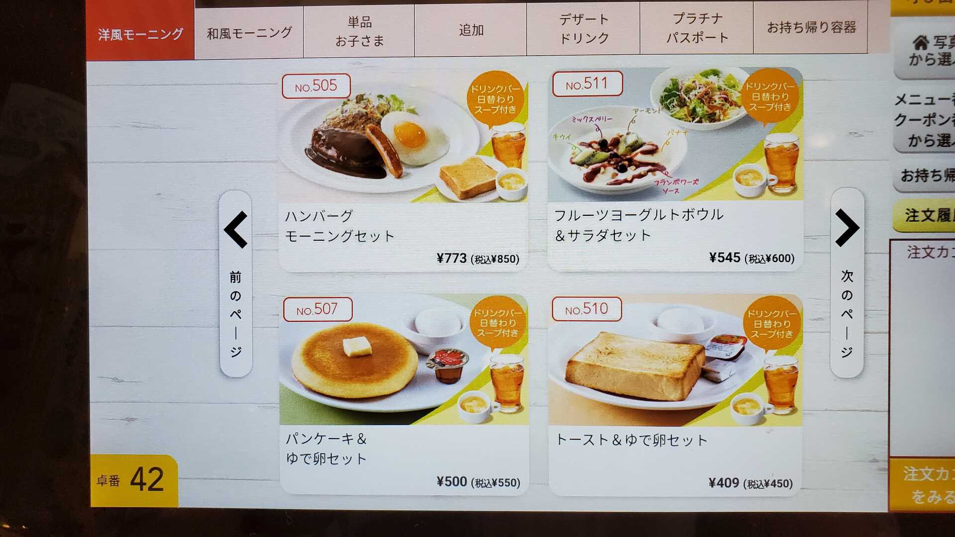 朝食モーニングに付くドリンクバーやテイクアウトについては以下記事にて詳しく解説していますので、あわせて参考にしてみて下さい。