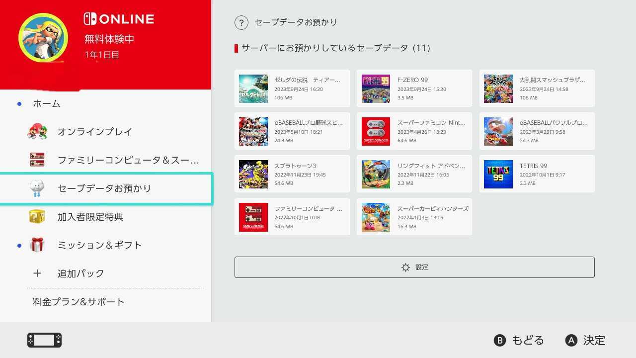 ニンテンドースイッチオンラインの加入期間が終了すると、上記「セーブデータお預かり」機能でバックアップされているデータは利用できなくなります。