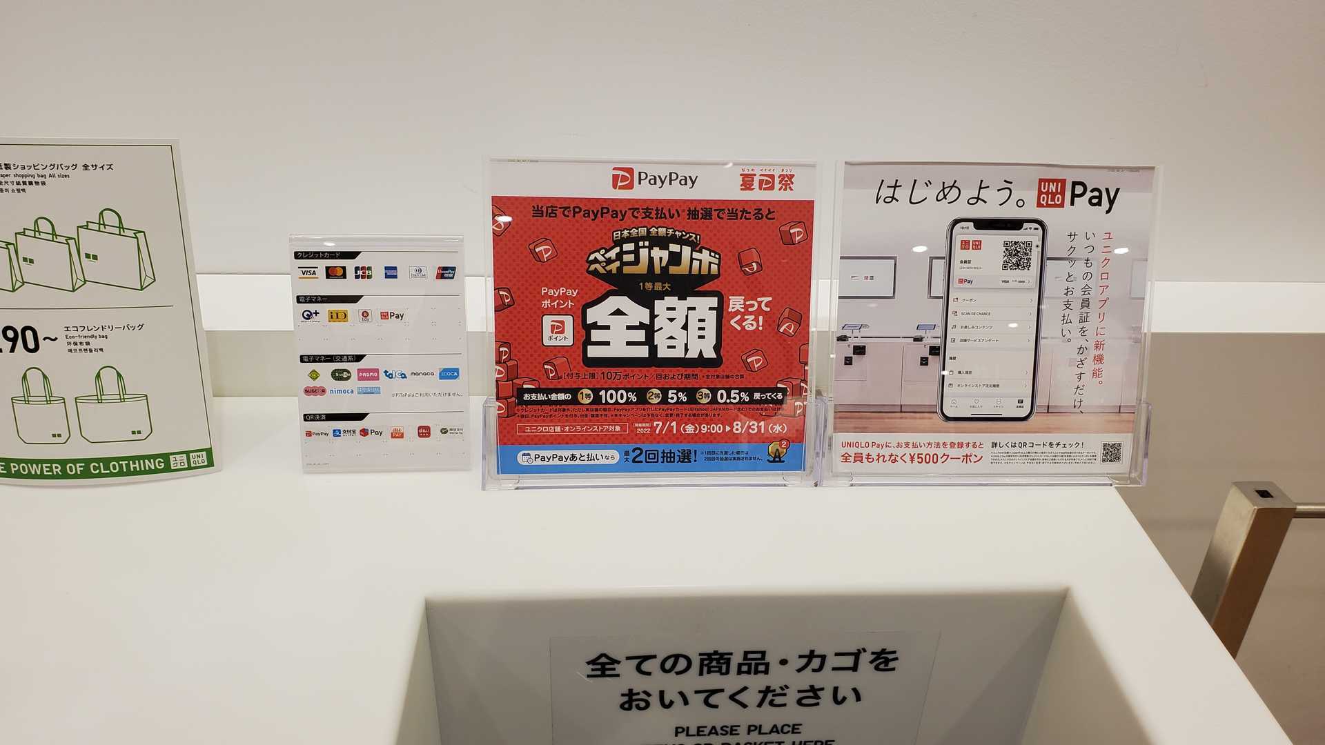 PayPay加盟店は「PayPay公式サイト」でも確認できる他、実店舗においては上記のようなPOP広告やレジに備え付けの決済可能表記にPayPayのマークが示されているので一目で分かるようになっています。