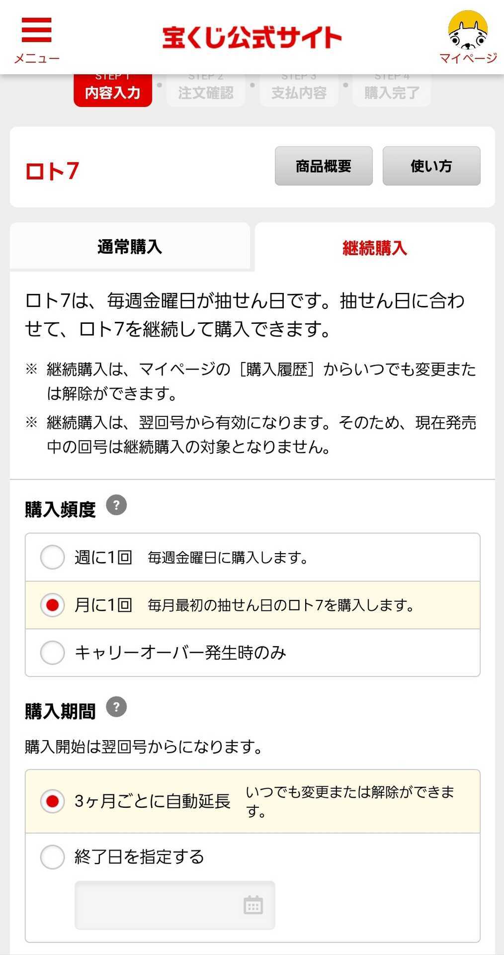 宝くじ公式サイトでは「予約購入」や「継続購入」により、あらかじめ指定した枚数を予約購入ないし継続的に自動購入する設定ができます。